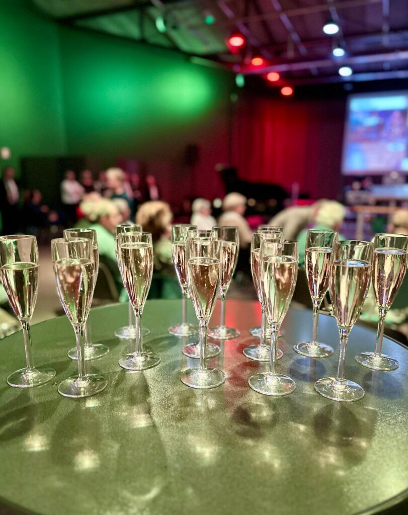 Naast de jubilarissen kende de nieuwjaarsreceptie 2026 ook iets nieuws. Op deze editie waren ook de vaste huurders van ons mooie gebouw uitgenodigd om het glas met ons te heffen op een magisch 2026. Zangdocent Iris van der Made mengde zich tussen de leden. Sander Tournier (pianoschool) liet zich ook even zien en zelfs zangkoor Close4You (dat eind 2025 is gestart in ons gebouw) liet zich niet alleen zien maar ook horen. Zij beklommen het podium en stelden zich zingend voor.