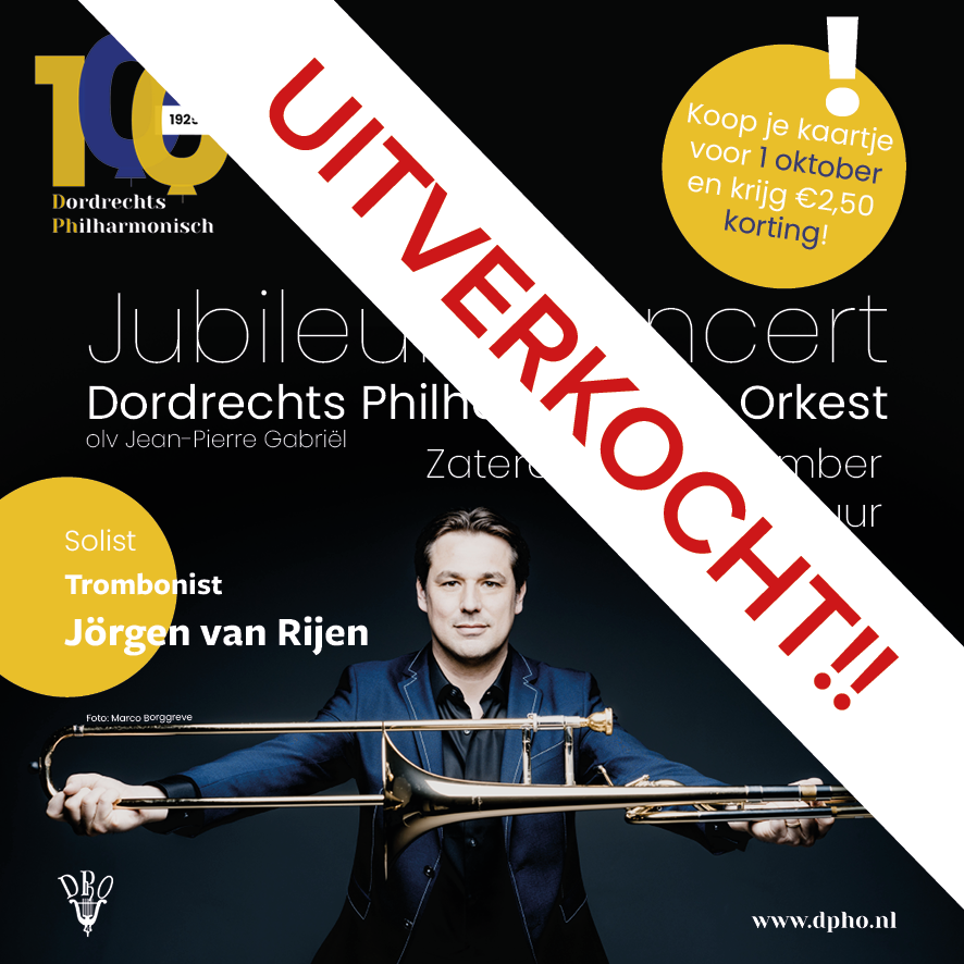 Op zaterdag 29 november 2025 treedt de beroemde trombonist Jörgen van Rijen op samen met het Dordrechts Philharmonisch Orkest. Het wordt een feestelijk concert ter gelegenheid van het 100-jarig bestaan van onze vereniging.