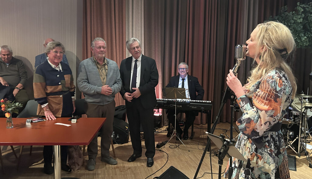 Phil’s Bigband plukte op zondagmiddag 30 november de sterren uit de hemel en deed de pannen op het dak van cultureel centrum Landvast rammelen. Voor ons eigen plezier, voor onze fans en voor het echtpaar Duran. Zij zagen hun wens in vervulling gaan. Geen overwintering in Torremolinos; nee hun grootste wens was een ‘meet and greet’ met Jan van Leeuwen. Ze hadden ‘onze’ trombonist Jan in het MAX Orkest zien schitteren. En nu deze levende legende zomaar op een zondagmiddag even neerdaalde in Alblasserdam, kwam de vervulling van de wens van de heer Duran plots zeer nabij. De krant was erbij. Theresia Kranendonk, onze welbespraakte lady-singer sprak mooie woorden. Er werden foto’s gemaakt. En natuurlijk werd er volop geswingd door Phil’s Bigband.